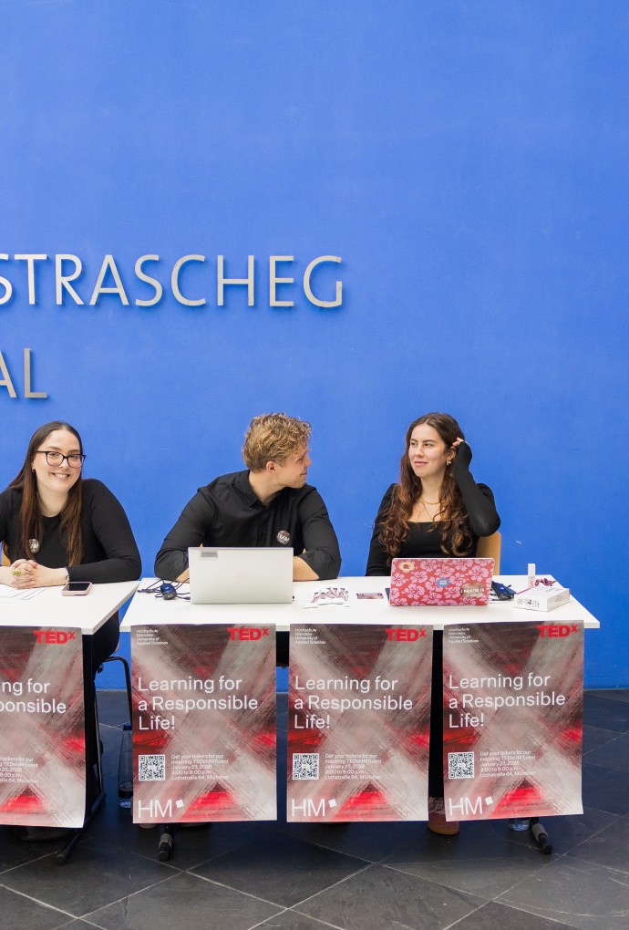 The TEDxHM event is a special highlight: for the first time, Munich University of Applied Sciences is collaborating with TED to offer students and guests a unique experience. The event enables direct contact with inspiring speakers from all over the world – right on campus. The diversity of perspectives creates a fresh, varied, and future-oriented atmosphere. And best of all, you can be part of the entire process.