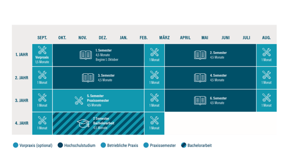 - Der Einstieg ins Studium mit vertiefter Praxis ist auch während des Studiums zum 2. oder 3. Semester möglich.