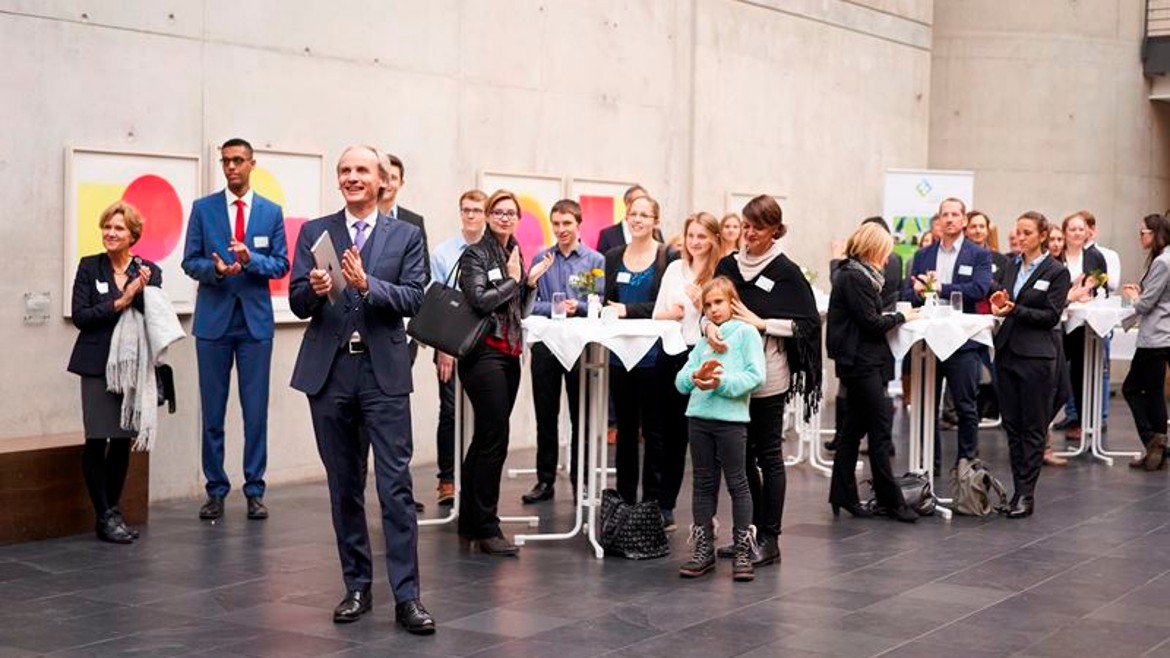| 6. Im Wintersemester – meist Ende November – findet eine feierliche Auftaktveranstaltung inkl. Urkundenvergabe an der HM statt, sodass sich Fördernde und Geförderte des Deutschlandstipendiums persönlich kennenlernen können. |